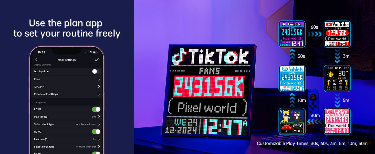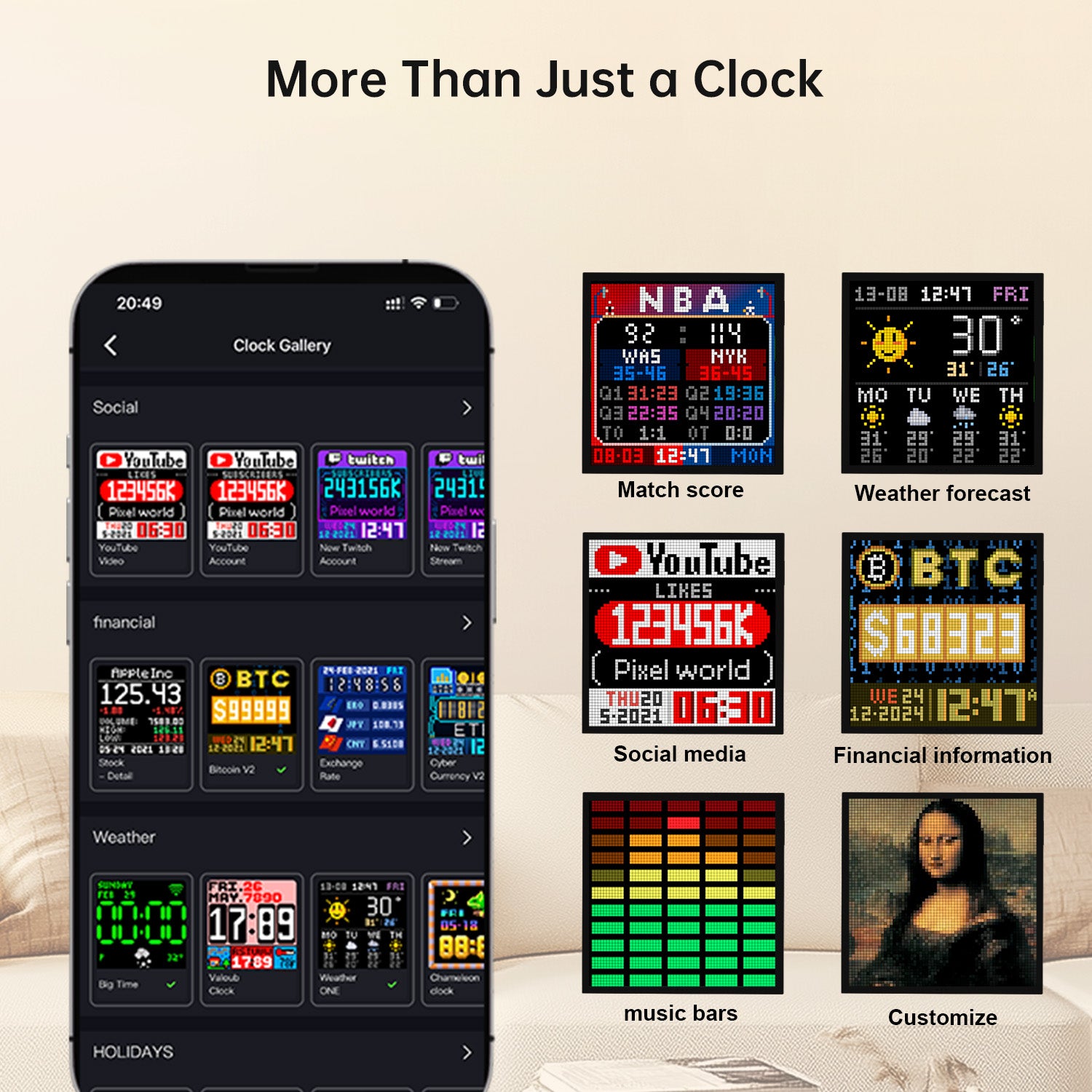 Whether it's creating stunning pixel art, tracking social media engagement, or enhancing your gaming atmosphere, the Pixoo-64 is designed to do it all with flair and precision.