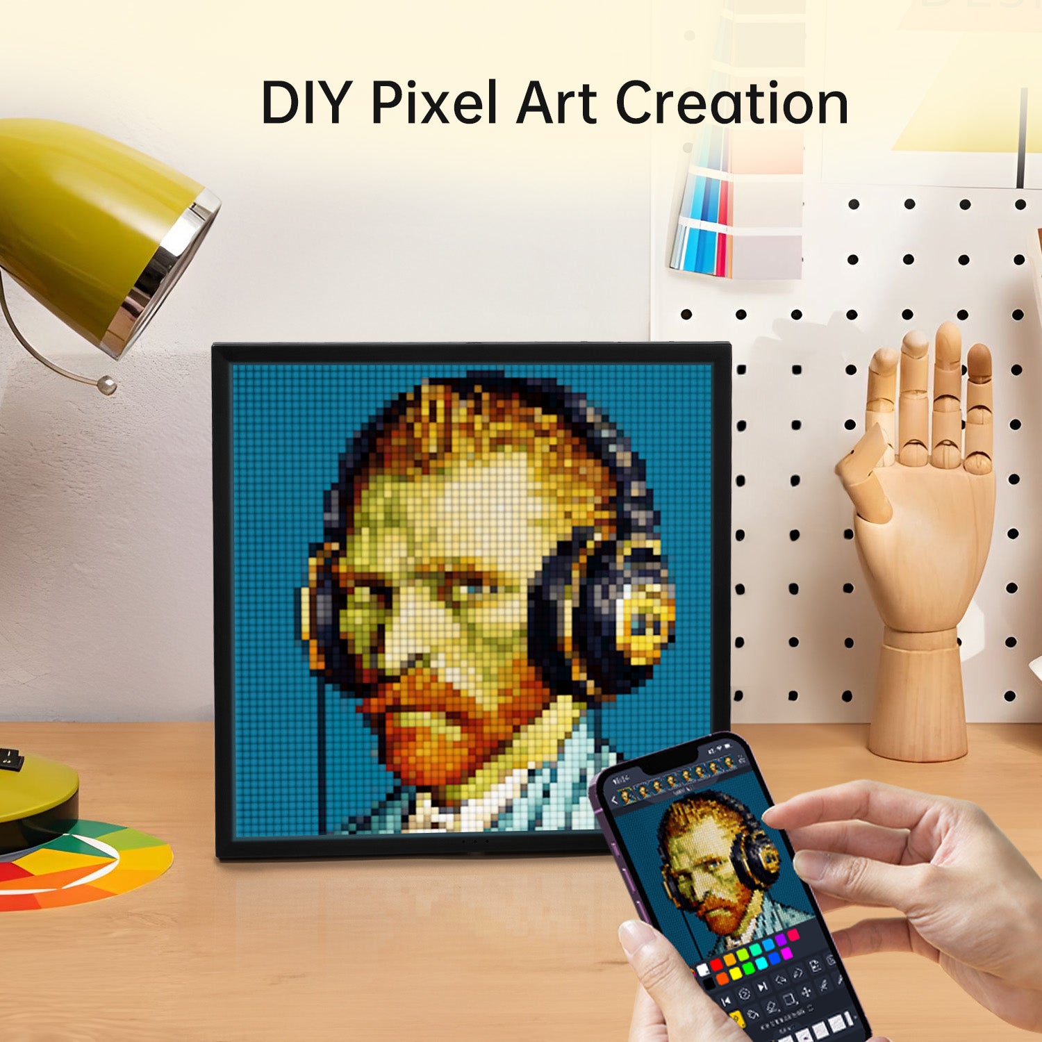 The Divoom Pixoo-64 allows you to create digital art and decorate your home the way you like. This cutting-edge 10.3-inch pixel art display not only brightens your space but also brings your ideas to life through its vibrant 64x64 LED panel.
